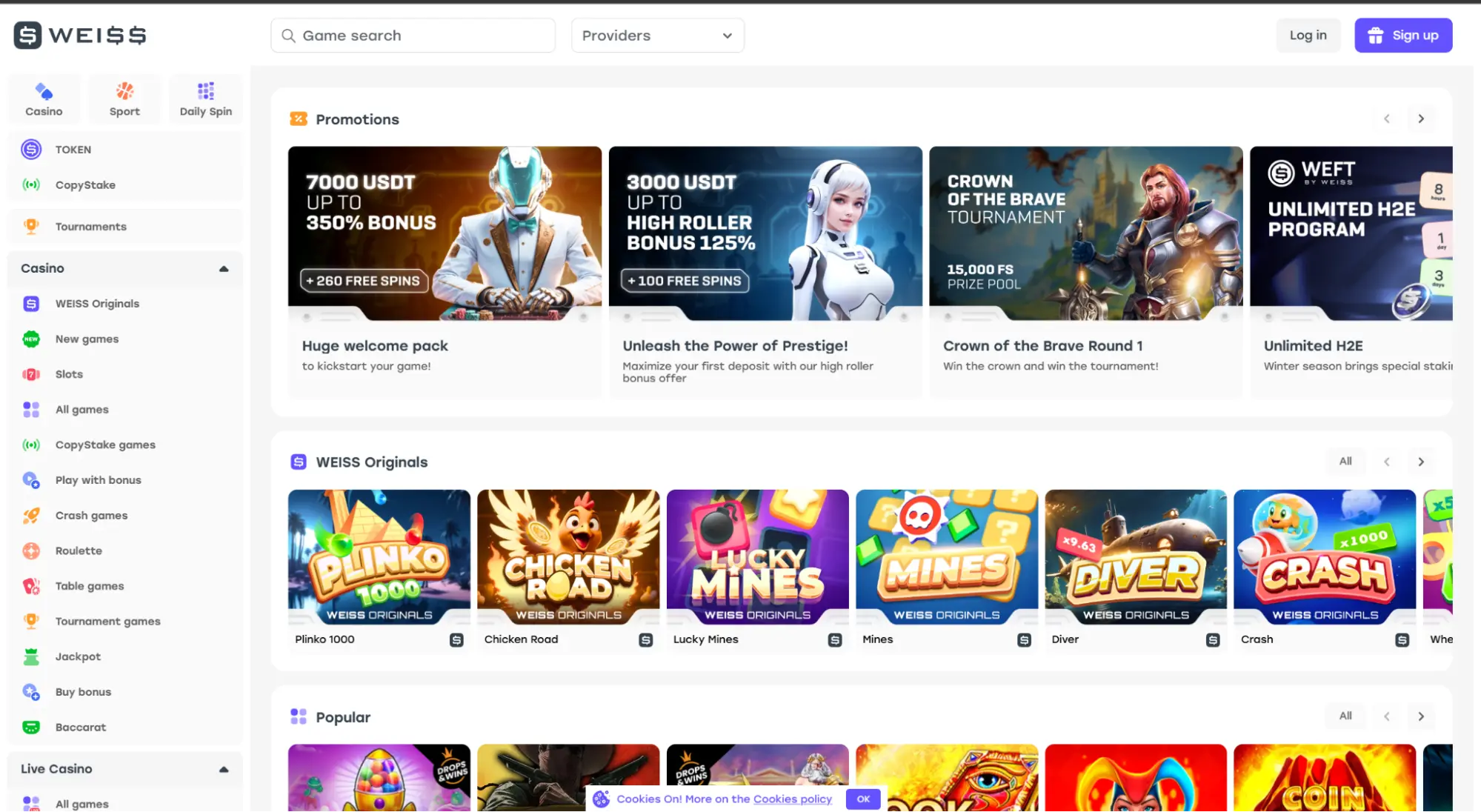 Didelių sumų žaidėjai gali griebti „Boost“ premijas už indėlius nuo 500 USDT, kurios suteikia iki 3000 USDT premijos lėšų ir papildomų nemokamų sukimų. Dažnai rengiami turnyrai ir gyvos pramogos, todėl „Weiss“ suteikia įtraukiančią lošimo patirtį kriptovaliutų entuziastams.