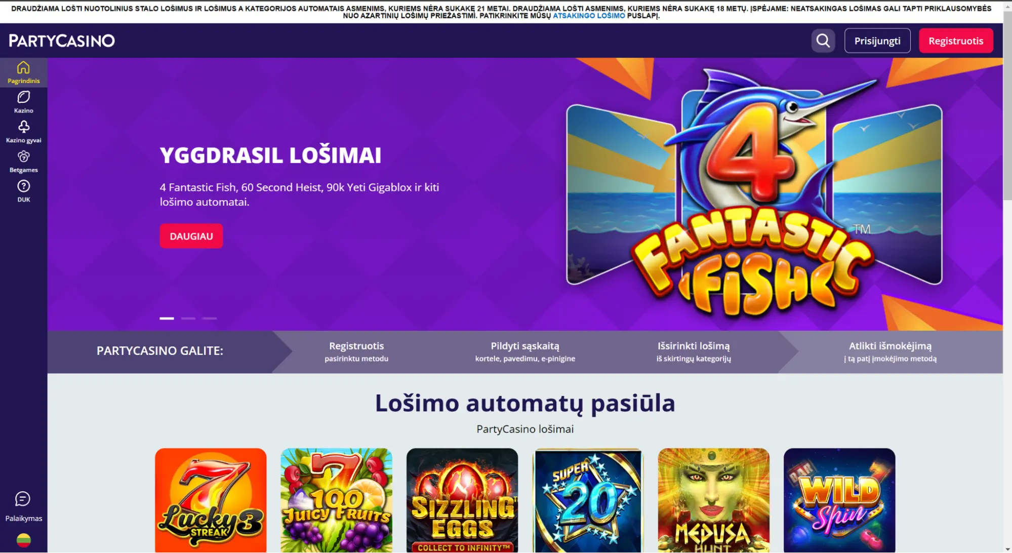Vienas iš išskirtinių PartyCasino casino online bruožų - Lietuvos taisyklių laikymasis, įskaitant lošimų licenciją, kuri užtikrina saugų ir sąžiningą lošimą. Kazino rūpinasi žaidėjų saugumu ir siūlo patikimus Lietuvoje plačiai naudojamus mokėjimo būdus, todėl įmokos ir pinigų išėmimas vyksta sklandžiai. Klientų aptarnavimo tarnyba teikiama lietuvių kalba, todėl greitai ir veiksmingai atsakoma į visus užklausimus.